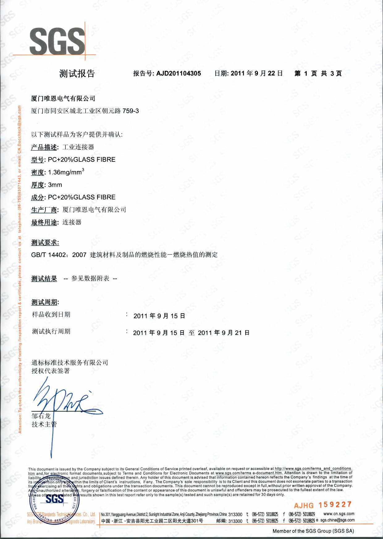 GBT 14402 燃烧值测试报告