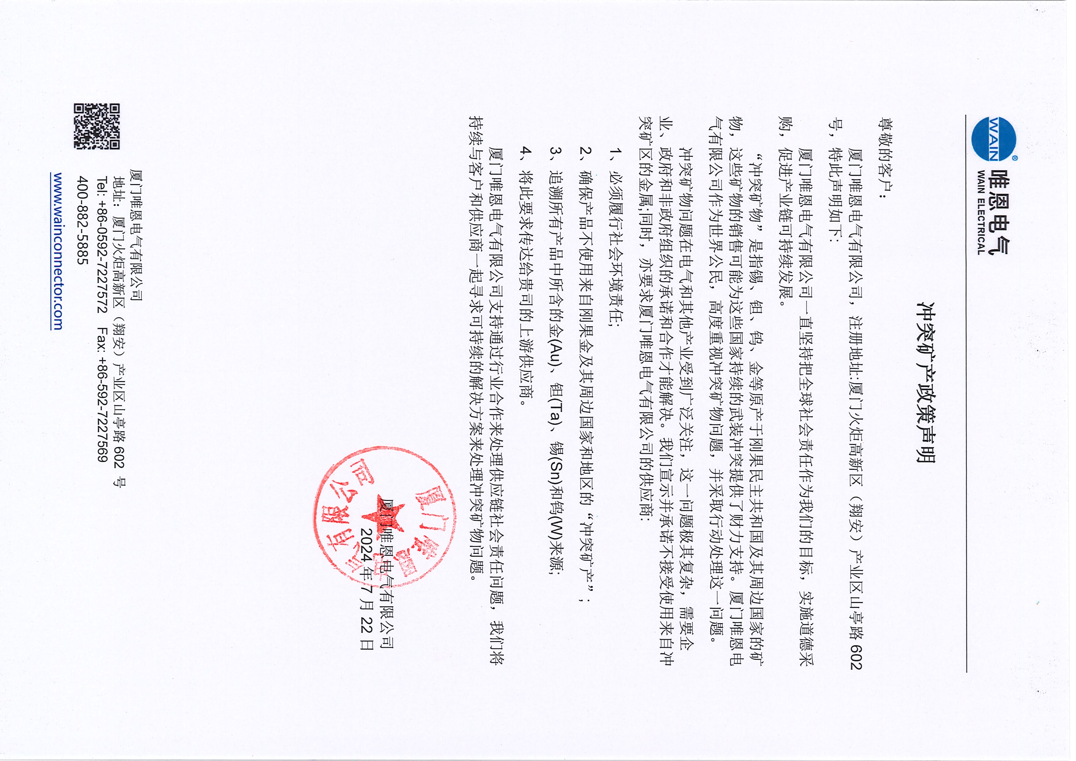 WAIN关于冲突矿物的声明