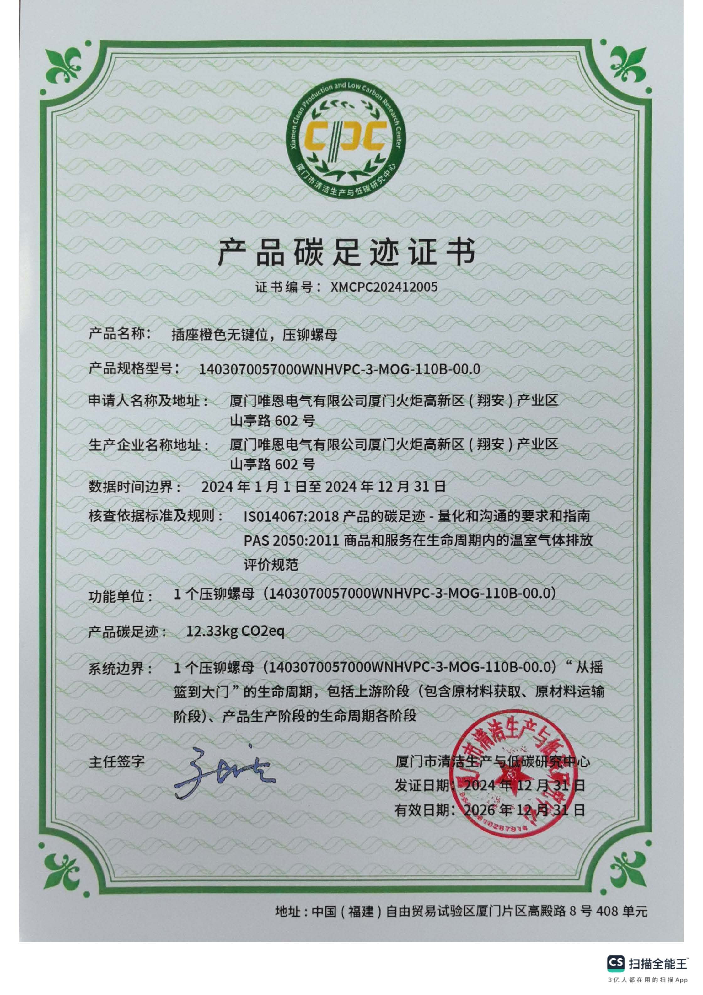 产品碳足迹证书