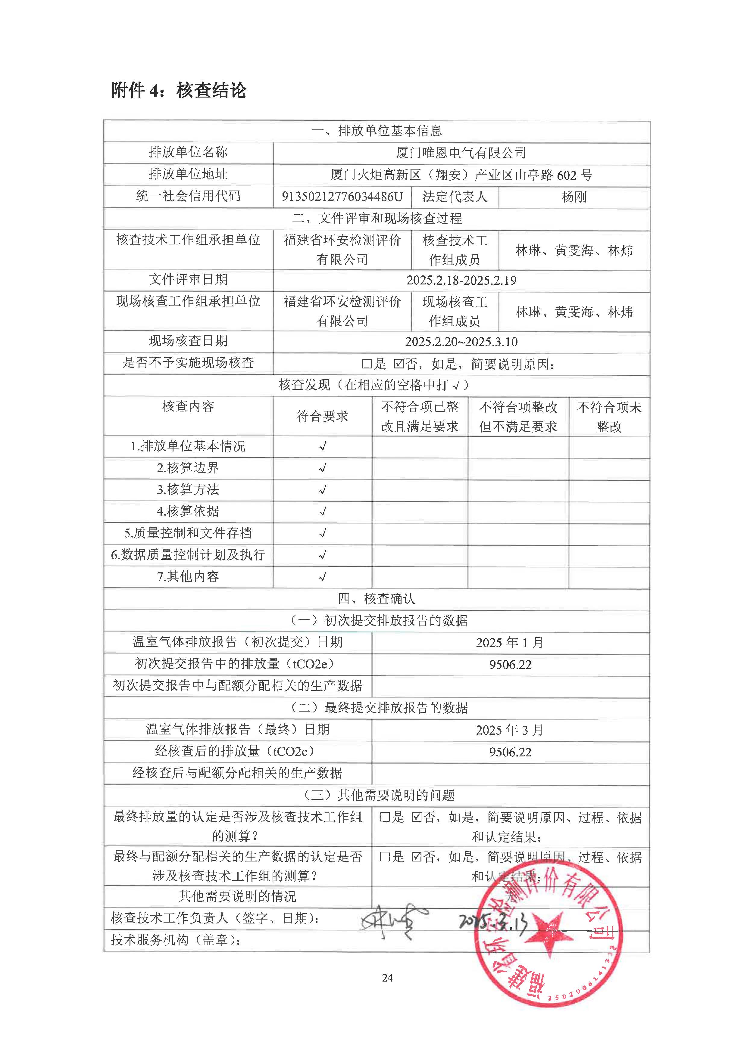 温室气体排放核查声明