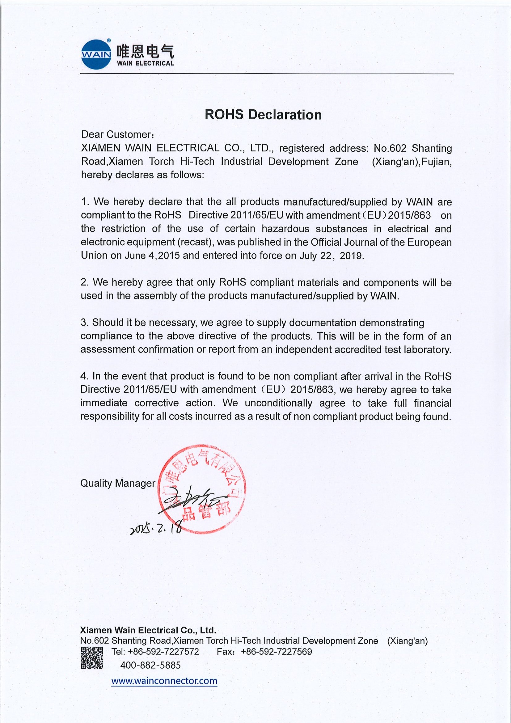 RoHS 合规声明