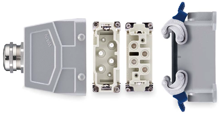 重载连接器,又名HDC重载接插件,广泛应用于建筑机械、纺织机械、包装印刷机械、烟草机械、机器人、轨道交通、热流道、电力、自动化等需要进行电气和信号连接的设备中。