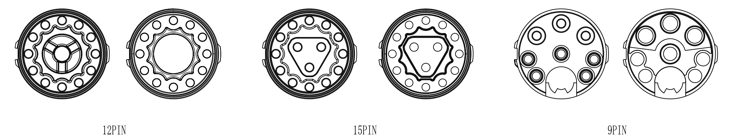 提供9、12、15芯等选项,适配不同信号与电源配置。